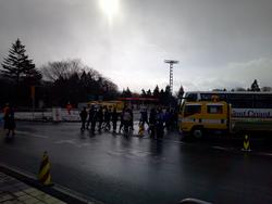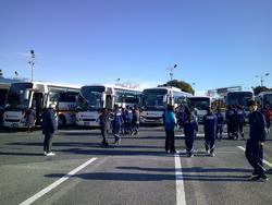 朝の出発式の様子です。遅れずに集合することができました。市役所でバスに乗りました。