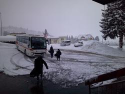 開校式中はずっと雪が降っていました。大雪警報が出ている中ですが、