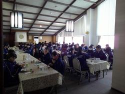お昼は、中華丼でした。おなかペコペコだったようで、お代わりにいっぱい並んでいました。