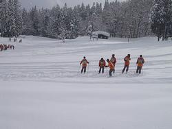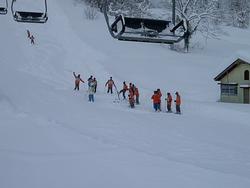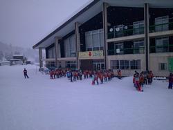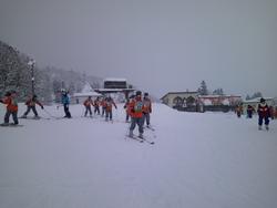 スキー講習が始まりました。吹雪と晴れ間が交互におとずれる中、がんばっていました。