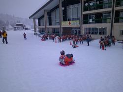 新雪でなかなか滑っていかないソリでしたが、乗り方を考えているクラスもあり見ごたえ十分でした。