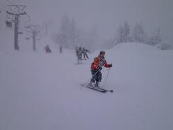 5分毎くらいに雪の量が変わるので、視界の確保が難しいですが、フカフカの雪でスピードがでないため