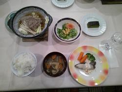 夕食は、牛すき、ブリのタルタル焼き、コーンサラダ、けんちん汁、抹茶ブラウニーでした。
