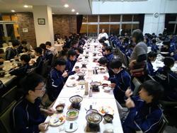 食事係の「牛すき、大好き」のあいさつのもとみんなで食べました。