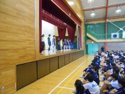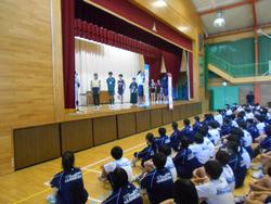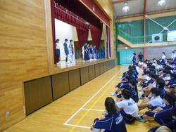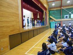各部活動部長さんからの決意表明と生徒会や美術部からの激励の言葉など、今週末から始まる新人戦に向けて出場する部活動部員にとって大きな励みになったことでしょう。各種目の代表として練習の成果を十分に発揮してきてください。