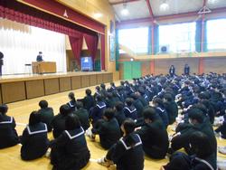 さて、明日から14日間の冬休みがスタートします。冬休みを迎えるにあたり校長先生から2点お話します。