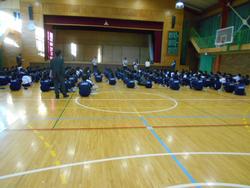その事前指導が体育館にて行われました。しおりを活用し、3日間の流れや取組について確認しました。明日は7:00生徒集合です。