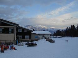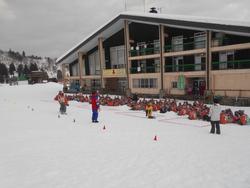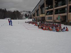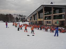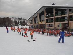 1日目のスキー講習が終わり、16:00から雪上レクが始まりました。雪玉を作り盛り上がっています。