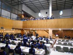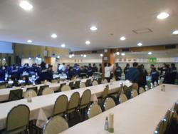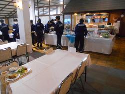朝食の様子。バイキングです。上下階に分かれての食事。1,2,3組は下の階、4,5組は上の階です。広々使えて快適です。