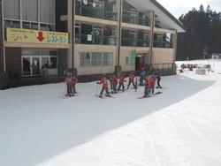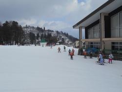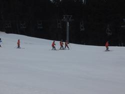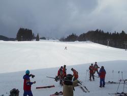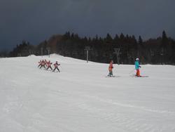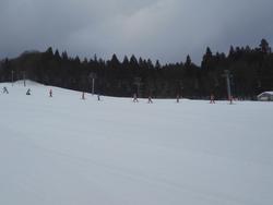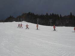 午前中の講習です。9:00~10:00くらいまでは小雨が降っていましたが、現在は止んでおります。楽しそうにスキーを滑っています。