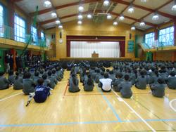 2月の生徒朝会が体育館にて行われました。久しぶりに雨が降り、乾いた空気に潤いを感じると同時に感染症も落ち着いてきました。
