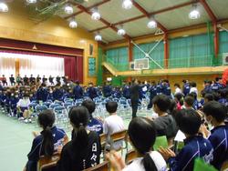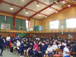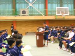 昨日に入学式を終えたばかりですが、新入生は、今日から様々な教育活動が始まります。早速、第二中学校のことを早く知ってもらうために生徒会活動や部活動、委員会活動などについて上級生から説明がありました。特に部活動については、来週からの仮入部期間を経て、本入部までの流れの説明と、実際にどのような部活動があるのか、その部活動は、どのような活動をしているのか、一部実践を交えて紹介しました。対面式の様子をご覧ください。